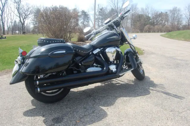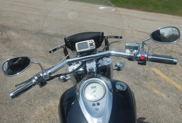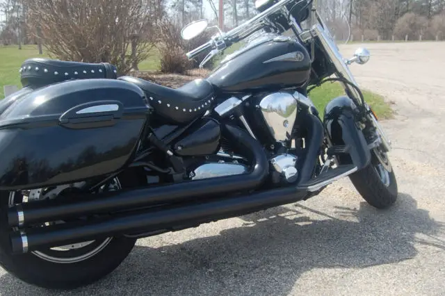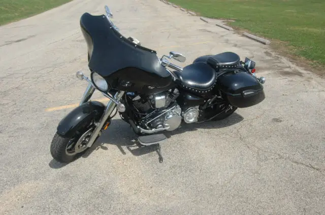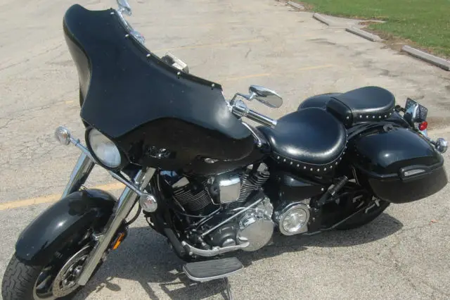 Excellent Condition. Custom Handlebars and Exhaust pipes. 2nd Stage carb kit installed to fine tune motor with exhaust. Sounds excellent and runs strong. Comes with 2 fairings that can be interchanged within 5 minutes with just a hex wrench. Hard Bags GPS and Rider Floorboards. Comes with padded passenger backrest and luggage rack. The passenger backrest/luggage rack is not installed only use on long trips. I personally like the way the bike looks better without backrest/luggage rack installed. Also included is original exhaust if you want to go back to chrome and quiet. The Batwing fairing didn't come with the motorcycle. It was fabricated and custom painted to fit the Road Star. It has openslots for a radio.