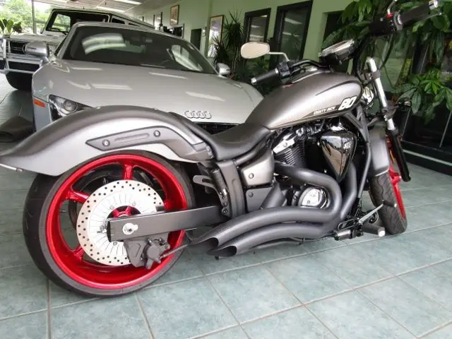 Just took this awesome bike in trade from one of our own master technicians on another brand new toy, he changes toys every 6 months) with $3000 in top notch upgrades on this “as new’ 649 original mile 2014 Yamaha Stryker. The right bike in every way, bsolutely pristine, ot a single scratch, ick or mark anywhere. Ordered in sinister Matte Gray, ith the smooth and powerful 80 cubic inch (1304CC) liquid cooled V twin engine, he wide 210 series rear tire and the chopper inspired 21 inch wheel make this one of the best looking bikes on the road. Tastefully and professionally upgraded with a Low and Mean Lowering Kit, ow and Mean Low Profile Seat, ow and Mean Fender Eliminator, EFI programmer, stage candy apple red wheels, nd a great sounding Sharp Curve Radius exhaust system by Freedom Exhaust. Show or Go with this awesome machine. His loss is your gain!