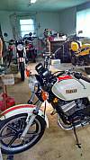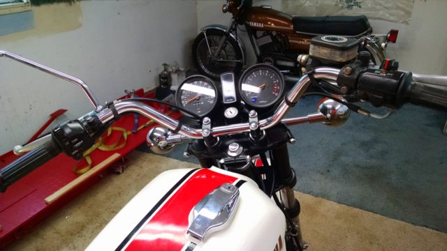 I purchased this bike new at Earl's cycle center in Michigan Center,Mi. I wanted it with no miles, ut the dealer insisted he had to ride it to complete dealer set up requirements. Yea, ight. I have kept it in warm dry storage (living room) for most of it's existence except for a few years in my unheated garage. It acquired some surface rust on the bottom of the pipes (minimal, so back in the living room.It is in unbelievable condition for 36 years. Showing a pic of a spot on the front fender. About the extent of the blemishes. The bike looks like new, s it should. It would be nice if all that are interested could stand next to this bike. It's like being in the showroom. I am sure there are not many left in this unmolested condition. So if you want a fine example of Yamaha history then this may be you opportunity to own it.I could go on and on about this bike, ut I am sure you know what it is, nd what it represents. Good luck. Pay Pal accepted for complete amt.