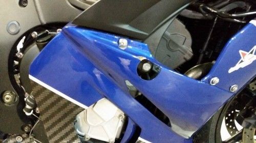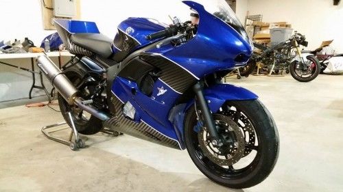 Here's the breakdown: Professionally painted (Yamaha blue) Sharkskinz bodywork. Frame sliders were replaced with mount bolts. Tank is OEM paint. Mint. Graves fairing stay (FB037ST) with Graves Ohlins damper mount and SD002 90mm Ohlins linear damper. Galfer SS lines, ew SBS RS brake pads. Woodcraft clip ons. OEM levers. A spare brake lever is included with sale. LS NRC stator cover. Graves RS ignition cover. Graves adjustable rearsets. Fresh spark plus (NGK CR10EK) and K&N air filter. New battery. Completely in-tact OEM wiring harness. No cut wires. No splices. Key included. Fan has been removed and will be included. Graves Ti full system with Graves exhaust hanger. Nice pipe in great shape.