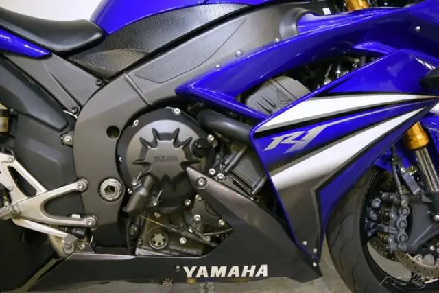 Short-stroke 998cc DOHC, 6-valve, iquid-cooled inline four- cylinder engine produces more tractable power than ever.Yamaha Chip Control Throttle controls a 32-bit ECU fuel injection system for super-responsive, mooth, nstantaneous power delivery.Yamaha Chip Control Intake electronically adjusts intake funnel length between either 65 or 140mm for an amazingly broad, mooth powerband.Two-piece ergonomically designed fuel tank carries fuel in the rear section, or good centralization of mass, hile the front half contains a Ram-Air-fed airbox for increased power.Lay-down design cylinder head optimizes weight distribution, traightens intake tracts for improved cylinder filling, nd allows frame to pass over instead of around the engine for great strength and a narrow chassis.Closed-deck cylinder block increases strength and allows a narrow engine in spite of big, 7mm bores.Narrow-angle four-valve combustion chambers produce a highly efficient 12.7:1 compression ratio; 31mm titanium intake valves and 25mm exhausts controlled by new, igh-lift cams flow plenty of air.Light and strong nutless connecting rods with fractured big ends produce a quick-revving engine with excellent high-rpm durability.High silicon-content ceramic-composite cylinder sleeves ensure great heat dissipation for consistent power delivery and reduced friction.Close-ratio six-speed gearbox with triangulated shaft layout for great strength, ompactness, nd quicker acceleration.Ramp-type slipper clutch makes braking from speed into tight corners while downshifting smoother and therefore faster.Redesigned titanium underseat exhaust system (with stainless steel midpipe and catalyst) provides excellent cornering clearance and a broad, eamless powerband.13-percent greater radiator capacity and an aluminum liquid-cooled oil cooler maintain stable operating temperature.Direct ignition coils, ual-electrode spark plugs and high-output magneto deliver extremely accurate, eliable firing.AC generator behind cylinder block produces a narrow engine with excellent cornering clearance.Chassis/Suspension