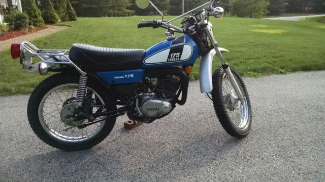 Here is a very nice original Yamaha DT175. Low miles at 1000. The bike is missing nothing. Starts right up and goes through the gears fine. Everything on the bike appears to be original.