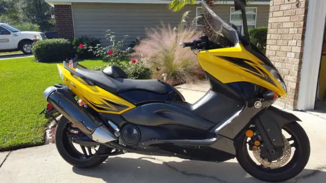 I'm selling my 2009 Yellow/Black Yamaha T-Max automatic motor scooter. It's in like new condition! Always garaged and well taken care of. Fresh oil. Newer Battery. Powerful 500cc engine runs flawlessly and gets up to 47 MPG. Super comfortable and safe to drive. Dual Disc Brakes. Liquid cooled engine. Very quick, ast and responsive and a real blast to ride! I have priced my T-Max well below KBB at $3,725.00. I have clear Georgia Title. This is really a beautiful looking bike...gets lot's of compliments! I am the original owner....Bike driven weekly...mileage is currently at 4,502. You will absolutely Love this Scooter! Selling only because of unfortunate back issues. I will also throw in the matching full-face Helmet and racing jacket with the bike as well! This is by far your best deal, eriod, n a 2009, ike new condition T-Max! Will make a great Xmas Gift to a lucky person! Call me at 912-445-5383 today! I'm in Richmond Hill, a. right near Savannah Thanks!