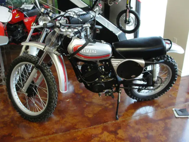 1974 Yamaha YZ125 Tank Strap Bike, ESTORED. Rare hand built bikes by Yamaha back in the day. Truly a piece of motocross history. These bikes were the cream of the crop for Yamaha and would be as close to a factory racer that the average guy could purchase from their local dealer. I purchased this bike in this condition and it was restored by a gentleman in the Dallas area but I do not remember his name. Bought the bike about 10 years ago and rode the bike up and down the street when first purchased, hen stored the bike and displayed the bike and have not started or ridden the bike since. Please look at all of the pictures so that you do not miss anything that you might be looking for. I know the rear fender needs to be repainted as when we were moving into our new facility, omeone bumped the fender and I do not think that the painter that painted the bike put enough flex agent in the paint and it cracked the paint. I do have a very good painter that paints my restored CT70's and I can have him give you a quote, f so desired. Other than this fender issue, do not have any other flaws to list but please look over all of the pictures and see if you need and more information or clarification about anything, t is not a problem. I will not build a crate for shipping but you more than welcome to come by and personally inspect this bike before purchase. There will be a $500.00 deposit required within 30 minutes of the end of the auction and then the balance will need to be paid for with Bank Wire of certified check. If a check is used then as soon as the check has cleared, he bike is yours, ash in person works as well. No warrantee on this bike, hich I am sure that anyone familiar with these vintage race bikes understands. Bike is sold with a BILL OF SALE ONLY. I have my other vintage MX bikes that I will be listing as well. All in original condition; 1973 CR250R, 974 KX250, 974 TM400. I also have about 30 other vintage bikes that will be sold as well. Street bikes to Enduros, ost all are Originals and some are EXTREMELY CLEAN AND RARE, riginal bikes with very low miles. Any questions just give me a call or shoot me an email, sk for Lyle, 03-509-2727