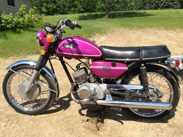 THIS IS A FAIRLY COMPLETE AND ORIGINAL CS3B IT HAS BEEN A FATHER SON PROJECT. RUNS GOOD SHIFTS GOOD, EW NEEDLES AND SEATS IN CARB NEW FLOATS BOWL GASKETS, EW POINTS AND CONDENSERS DONE BY LOCAL BIKE SHOP, AS GREAT SPARK ORIGINAL OE YAMAHA PARTS. NEW BATTERY THIS MONTH, EW GAS CAP PLUGS, UEL LINE AND FILTERS BACK TIRE IS LIKE NEW PETCOCK REBUILT CLEAN, XHAUST IN GREAT SHAPE, ITLE AND FRESH MINNESOTA CURRENT TABS.HONEST LIST OF FLAWS: SMALL HOLES IN REAR OF SEAT,HEADLAMP SWITCH BROKEN SO HEAD LIGHT DOES NOT WORK,SMALL GAS TANK LEAK BY PETCOCK WAS WELDED ON BY SOMEONE ELSE TRYED PATCHING BUT LEAKS A LITTLE DID NOT WANT TO MEDDLE WITH TANK ANY MORE, E FELT ITS BEST TO KEEP ORIGINAL,KICK START WAS WELDED ON A LITTLE BY SOMEONE ELSE SEE PICS, AS TOGGLE SWITCH INSTEAD OF IGNITION SWITCH BUT WORKS FINE. BUYER IS RESPONSIBLE FOR SHIPPING OR PICKUP.
