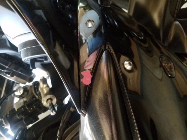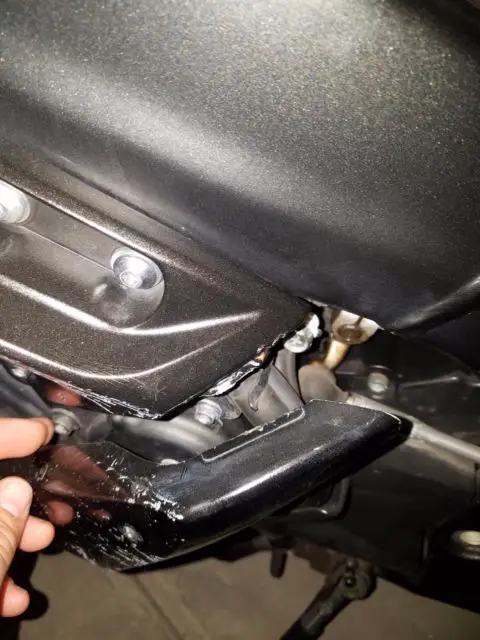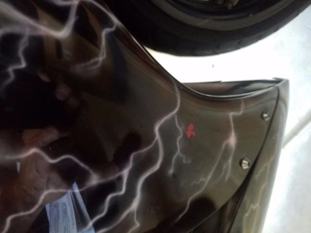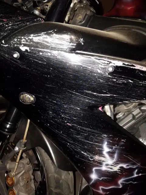 Small amount of paint missing in some spots and paint and fairing damage on left bottom side. From a low speed drop. Rear mount stand peg missing. Partial damage to fairings (see photos), roken plastic in couple fairing joints (see photo). Performance is still 100% and have never had issues with the bike or parts.