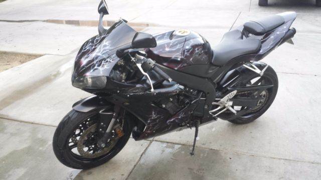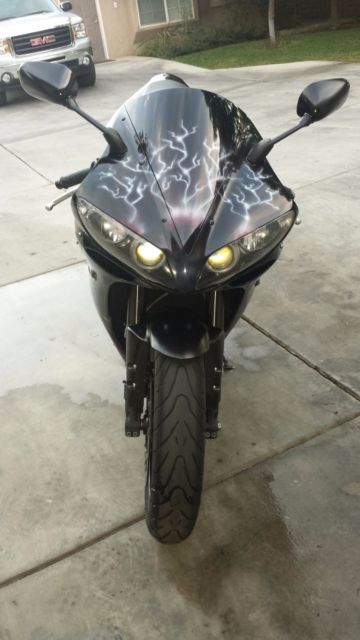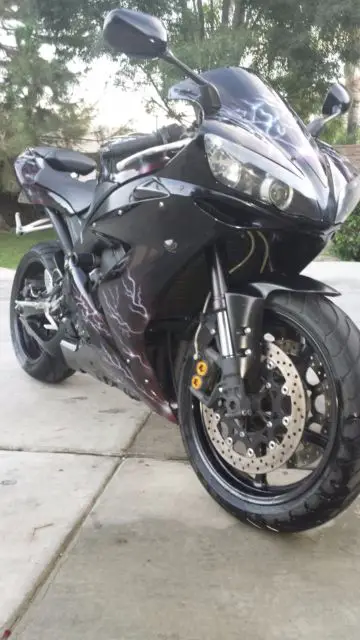 Yamaha: YZF-R1 Raven Edition with Custom Paint. Black with a red undercoat paint and lightning design. Custom airbrushed. Bike has salvaged title after being dropped at an intersection, amaging fairings. No problems with bike, tarts and runs incredible. Always garaged. Please feel free to message me with any questions or requests for more photos, tartup, nd exhaust sound.