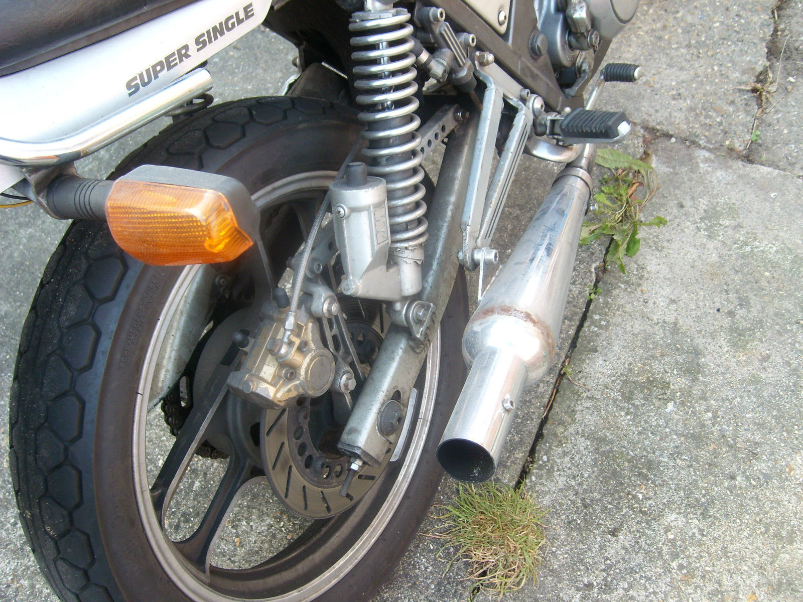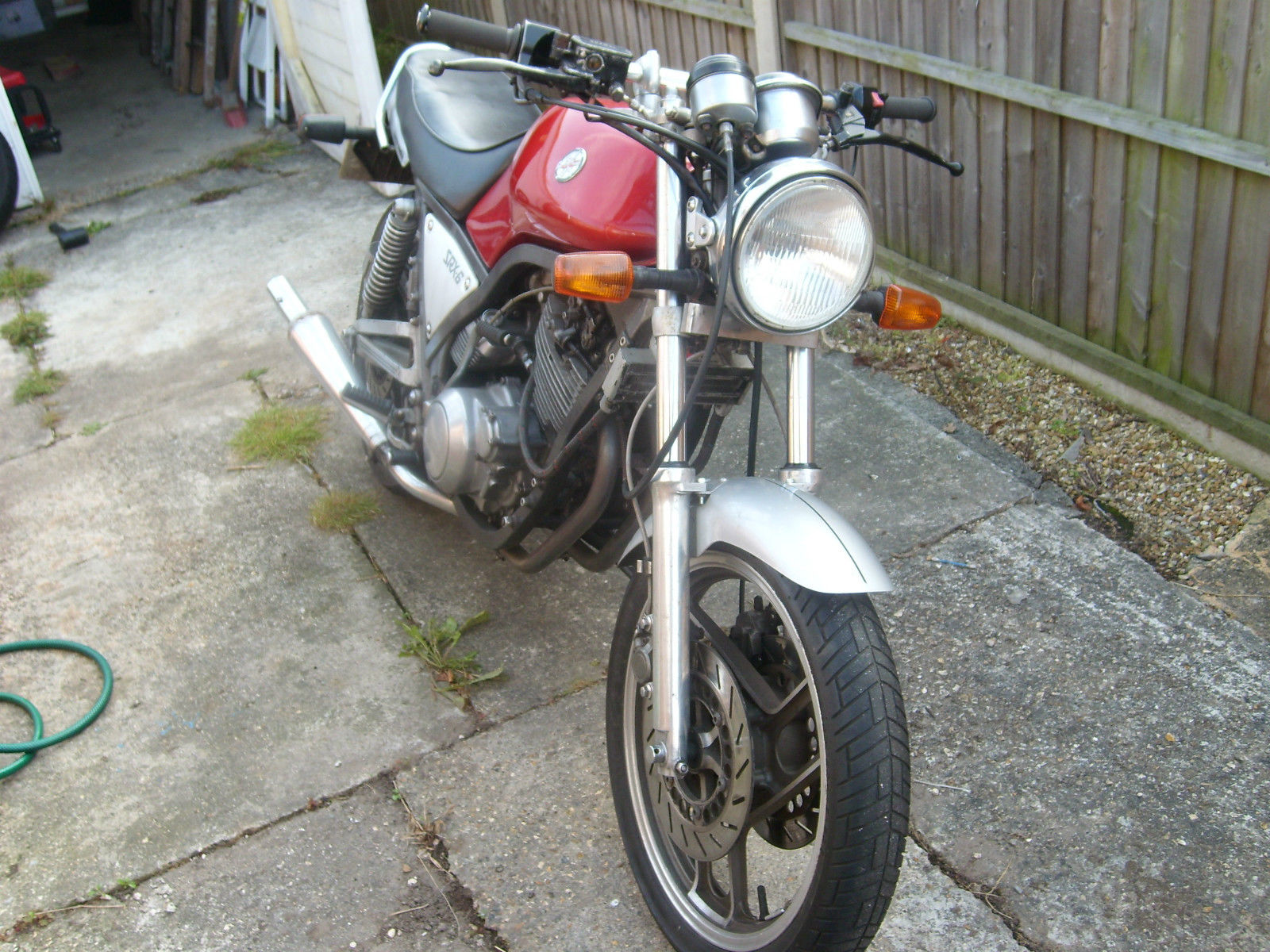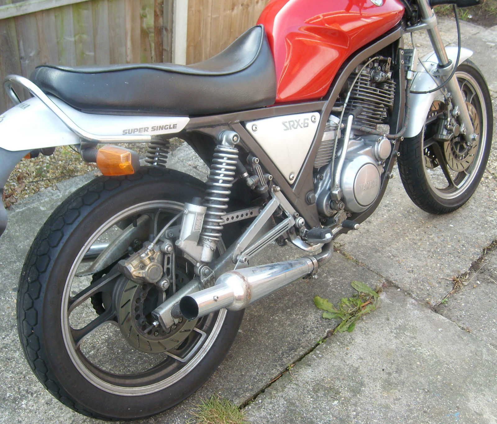 Hi and welcome to my auctionI have for sale my 1986 Yamaha SRX 600. I am selling as I don't have the time to either ride or give the TLC it deserves. The bike is a runner however has just failed its MOT on a few minor things that I just don't have time to sort out:Left hand switch gear has a fault - the horn andheadlight controls not working. They have worked so I guess it is a loose wire or similarNeeds a new rear reflectorNeeds a new rear tyreThe rear brake pedal is clashing with the exhaust pipe - just needs adjusting. It also has 2 advisorys:nearside fork has light misting of stanchionrear brake has slight fluctuation of brake effortOver the years I have had the bike I have done a fair bit to it although I bought it with an MOT and rode it away when I bought it. I have been right through the engine replacing most gaskets and having oil pipes re-conditioned. The bike has a lot of miles on the clock but I don't beleieve this is particularly accurate as the engine internals were in good condition. I have had the carbs cleaned and setup and have a K and N filter. The origanal bars are missing as shown in the photos but I do have 1 clipon in a box of spares which comes with the bike. I have a few bits but I'm not totally sure what. The originanl exhaust has long rusted away so it now has twin trumpet style exhausts. These came with the bike however they were huge when I got it so I had them shortened by about 6 inches. They do need to be painted or similar. The rear shocks are after market as are the fork internals and work well. The bike handles really nice but I cannot say what was fitted. There are a couple of paint chips on the tank where the bars catch but these can be fixed easily. I think that this is not the orginal tank as I it looks like factory paint and I am sure that the bike started out grey as the mudguard and rear are painted this colour. This is a guess though but I think the red looks good in any case. The bike does run and was started recently for the MOT. It is the kickstart model so can require a bit of effort until you get the knack. I have had the battery on the optimate for a couple of weeks so I have not started it since then. It does require some TLC to get it pristine but is essentially a good bike. I recommend a viewing and I am in most evenings and weekends - call me on 07985 691724It needs to be collected however I do have a van so we can probably come to some arrangement if the distance is sensible and the buyer pays for fuel. I am selling with no reserve so grab a bargain!Please feel free to ask questions and I will do my best to answer. Cheers and happy bidding!NO TIME WASTERS PLEASEI have just started the bike. It is running nicely on choke but is not ticking over properly. Probably just needs either the tickover adjusting or the carbs given a clean. I have also just found the spares I have. They include:rear footpegsgrab handle (sisey bar)spare exhaust downtubesseat fairingspare headlightside coversleft clip onwheel adjustersI also have a XT600 manual - same engine so has some useful info.