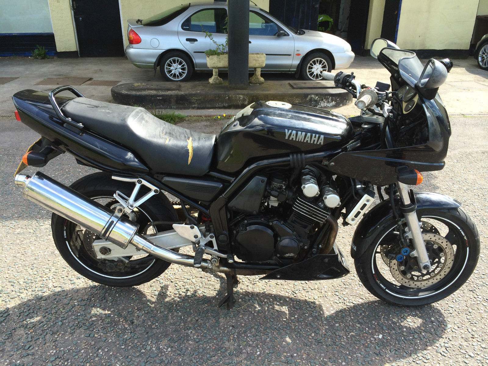 HI AND WELCOME TO THIS AUCTION FOR MY 1998 YAMAHA FZS600 FAZERI HAVE LISTED THIS BIKE AS SPARES OR REPAIRS BECAUSE IT HAS NO TAX OR MOTPLEASE LOOK AT THE PICTURES AS WHAT YOU SEE IS WHAT IT ISI BOUGHT THE BIKE AS MY FIRST BIKE AND NEVER GOT AROUND TO DOING IT AND NOW WHERE AT THE END OF SUMMER SO STICKING TO WORM CAR. TS BEEN KEPT IN GARAGE. HE GOOD BITS ARE AS FOLLOWSSTARTSRUNSSTOPSVERY GOOD TYRESSTAINLESS DOWNPIPE (SOUND NICE BUT NOT TO LOUD)UNDER TRAYALL ELECTRICS WORKI HAVE 2 KEYSTHE BAD BITS NOW!!!RIP IN SEAT. SEE PIC. RACKED NEXT TO REAR LIGHT. HAIN NEEDS A LUBE UP AS WHEN RIDING IT CLICKS. OR NEW CHAIN WOULD BE BEST. OULD BE BEST PICKED UP WITH TRAILER OR VAN AS NO T & T. nbsp;YOU ARE WECOME TO COME AND HAVE A LOOK ANYTIME TO VIEW BEFORE YOU BUY IM 2 MILES OF JN27 M5 NR TIVERTONNO RESERVE HAPPY BIDDING