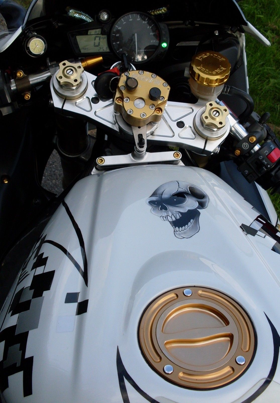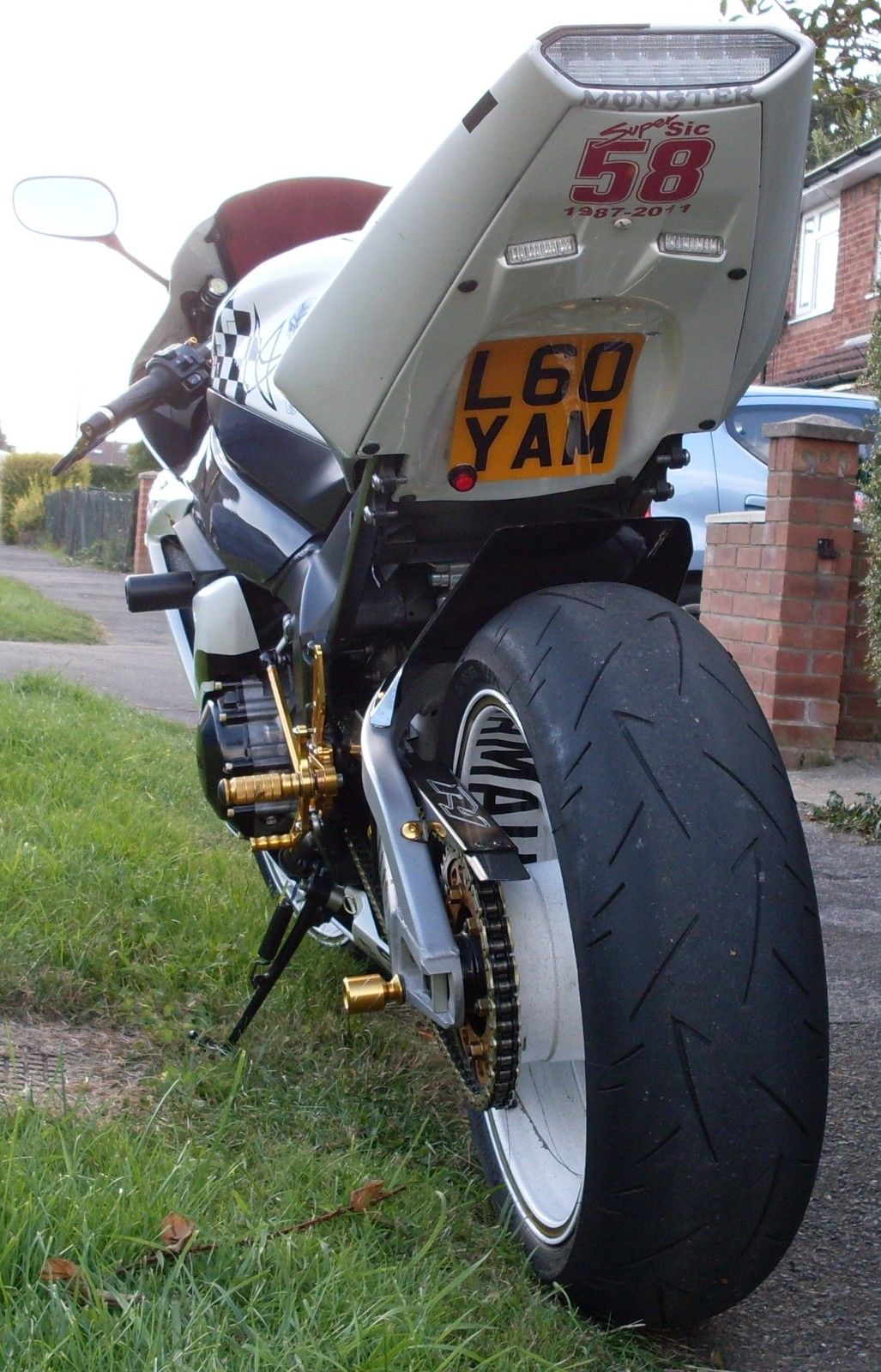 If you think the price is going to be lowered. Think again. I will not lower the price. lower than the said offer price. You are only jerking your self (I ONLY WANT TO SELL THIS BIKE TO BUY A NEW PROJECT (KTM RC8) TO WORK ON OVER WINTER)"BUY IT NOW"   £5500. 00 . (Make offers around £5000-5200 and ride into the distance. Lower Offers are automatically refused. ). Private Plate cost £1200. (so the bike is only costing you £4300. sell the spares it goes down to £4000. 00)(that's bloody good price for this machine)"MAKE AN OFFER" PRICE of £5100 minus the PRIVATE PLATE PRICE and sale of SPARES as well as the pair of tyres I'm also offering. then you are getting this bike for around £3200" (no other deals like that on e-bay or anywhere else). NEW 12 MONTHS MOT. ONLY 2 ADVISORIES-(LOUD EXHAUST AND FRONT TYRE CLOSE TO LIMIT) If the tyre advisory worries you; I have a track worn in set of "Michelin Power Pure" Tyres. in Very good condition. I paid £160 +£15 postage for them. The buyer is welcome to these as well. if wanted. THE BIKE IS NOW WHAT I HAD WANTED TO DO TO FINISH IT. CHANGED SWINGING ARM FOR ALUMINIUM NOT PAINTED AND ALSO CHANGED THE BLACK FORKS FOR GOLD .