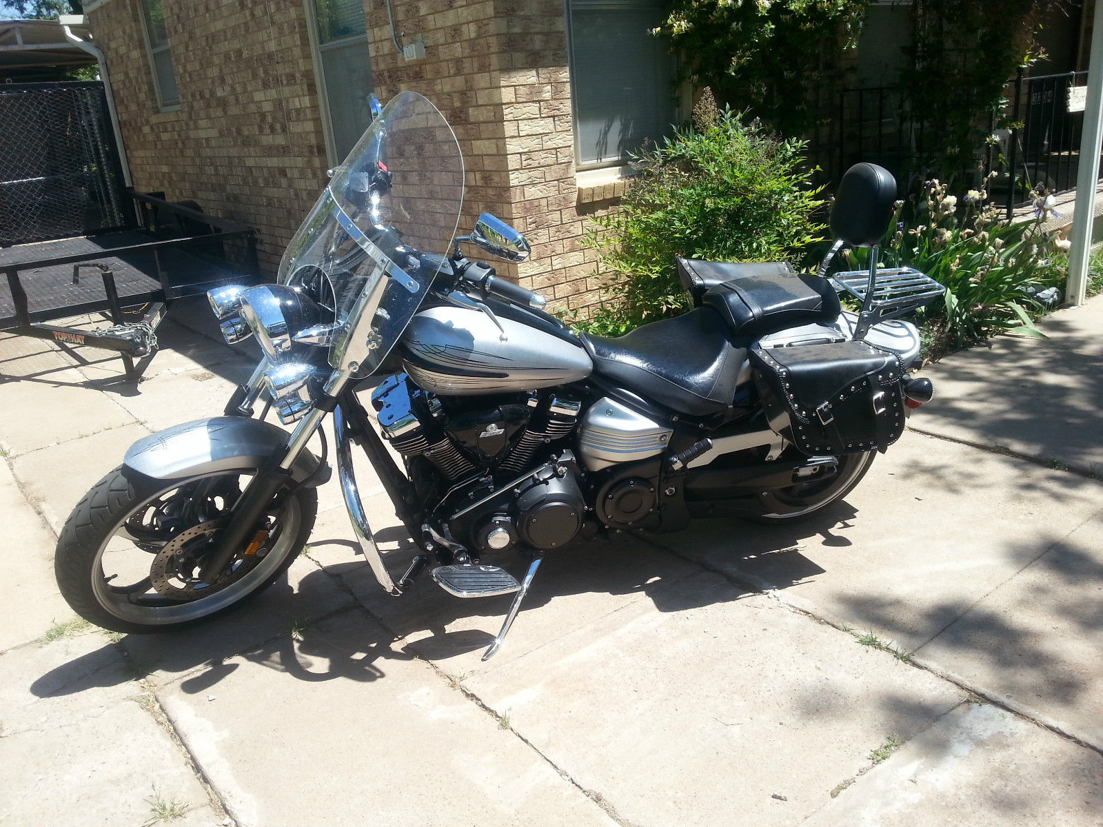 Selling a 2012 Yamaha Raider 1900 cc Motorcycle. This is a beautiful bike. It has all of the options. Such as Windshield. Driving Lights. Fatty Crash Bar. Cobra 2 in 1 Pipes. Flat Foot Pegs. X Blaster Tail Light. New Rearview Mirrors. and like new Saddlebags. The additions alone cost over $5. 00. With just about 8500 miles on it. this bike is like new. I have about $20. 00 invested. and am willing to let it go quickly for $8. 00. New Tires were installed just a few months ago. both front and back were replaced. They have very few miles on them.