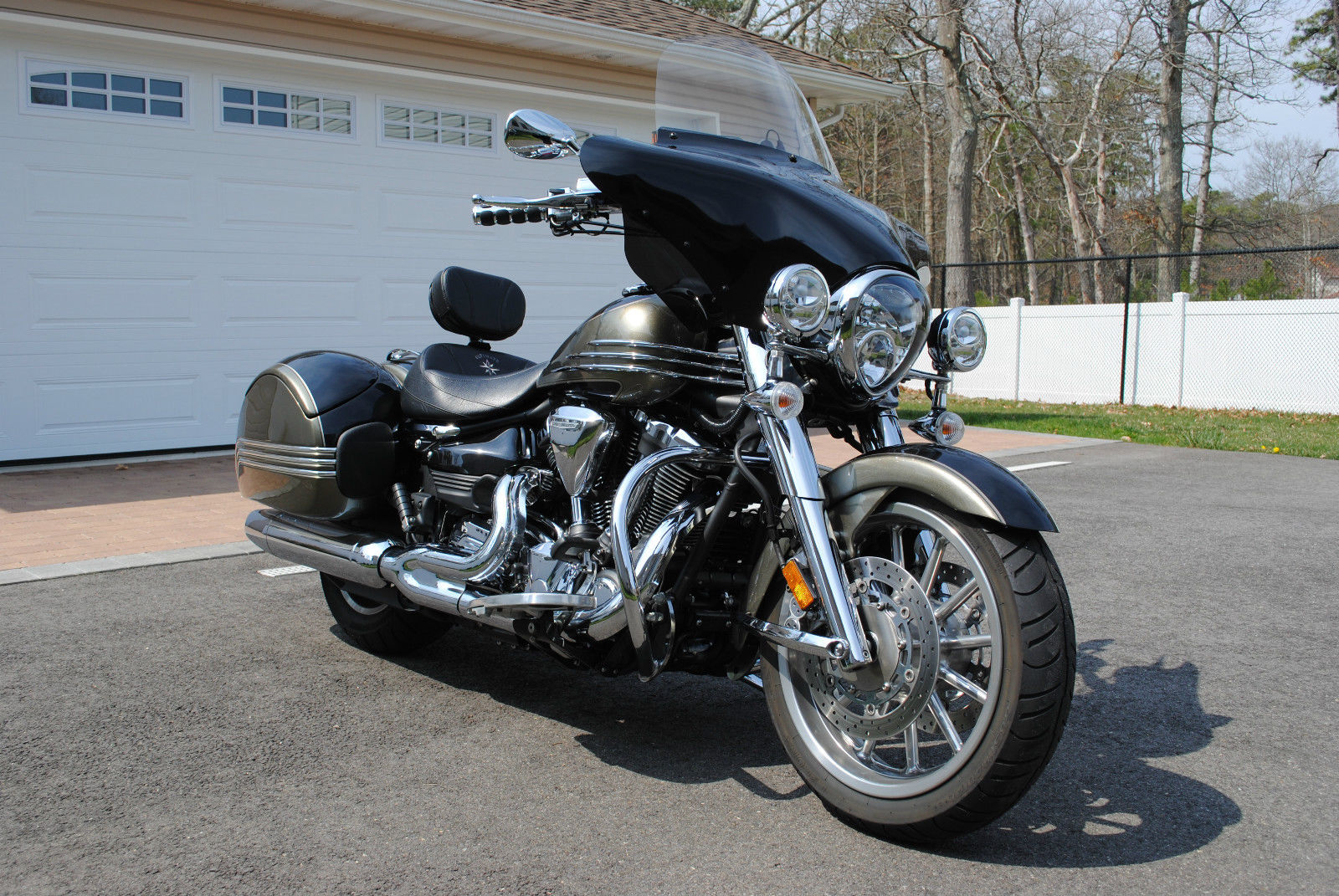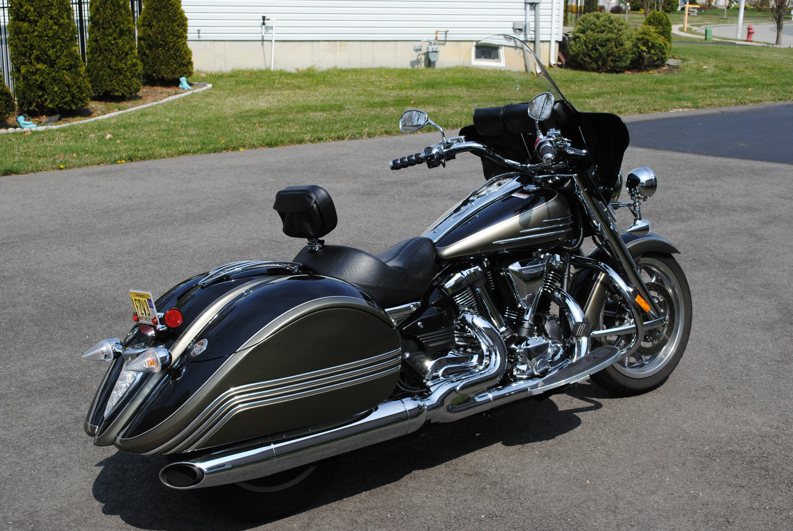 Bought new in 2010. two tone metallic charcoal and green paint. 1854 cc v-twin. belt final drive. ?ˆ?S?ˆ? (highest) level of factory chrome trim. absolutely STOCK exhaust system. 14. 42 miles.  Installed accessories include: Corbin saddlebags. Ultimate rider?ˆ™s saddle with backrest. Yamaha fender luggage rack. Kuryakin taillight multiplexer. Yamaha engine guard. Yamaha touring handlebars. Memphis Shades bat wing fairing. and Yamaha highway lights. Original tires replaced at 13. 00 miles with appropriate Avon tyres. battery replaced in December of 2013. Always dealer serviced. garage kept. needs nothing. Transferable. extended Yamaha warranty expires 4/1/2015. Unistalled original handlebar. uninstalled original rider seat. and uninstalled passenger seat included. Motorcycle is located in Bayville. New Jersey. $8. 00. cash only please.
