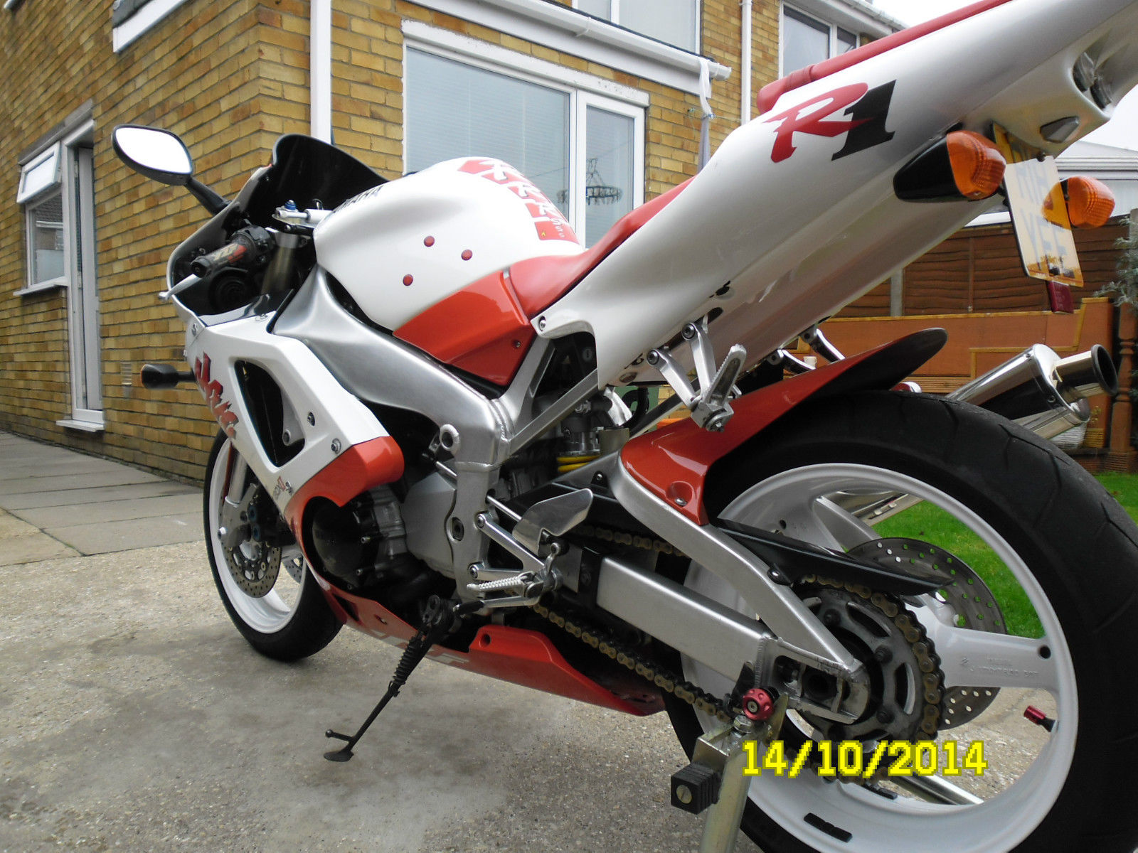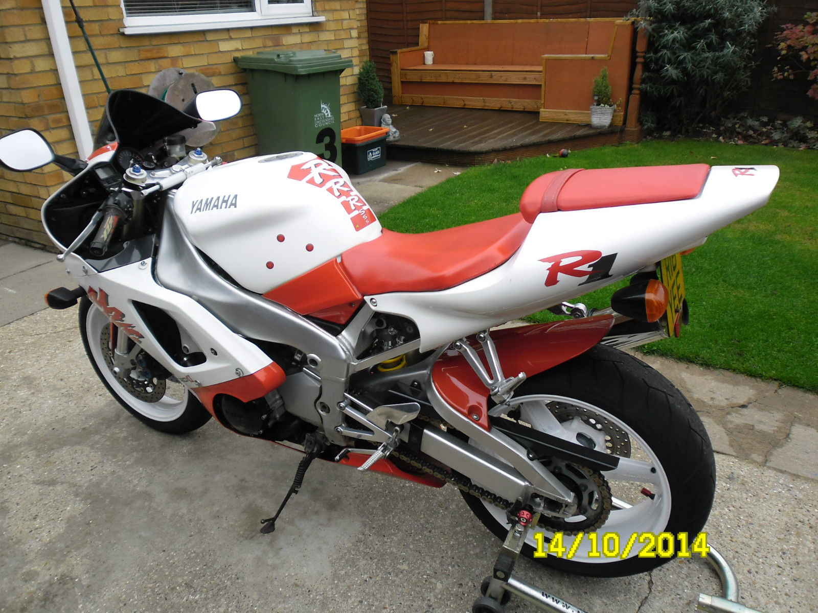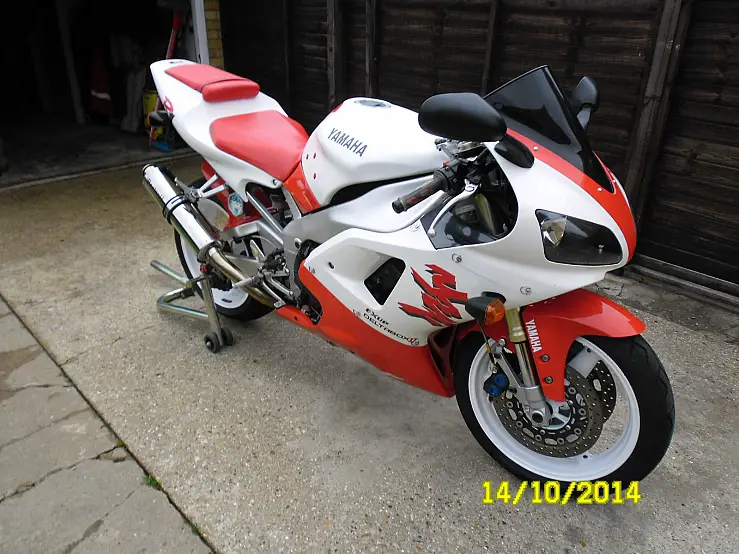 UP FOR SALE MY BELOVED YAMAHA R1 IN RED AND WHITEI HAVE OWNED THIS BIKE FOR THE PAST SIX AND A HALF AND HAVE ENJOYED EVERY MINUTE OF IT. ONLY SELLING DUE TO LACK OF USETHE BIKE RIDES PERFECT AND WILL KEEP UP WITH MOST MODERN BIKES OUT THERECHEAP INSURANCE(I'm 46 with full no claims and only costs me around £100 TPFT)DUE TO AN OVERHEATING ISSUE I HAVE FITTED A REPLACEMENT ENGINE WHICH HAD ONLY COVERED 16000 MILES THIS WAS DONE 2 YEARS AGO AND I HAVE ONLY DONE AROUND 500 MILES WITH IT AND HAS BEEN FAULTLESS. NEW CLUTCH PLATES AND DIAPHRAGM SPRING FITTEDNEW FRONT AND WHEEL BEARINGS FITTEDNEW HEADSTOCK BEARINGS FITTEDNEW PADS FRONT AND REAROIL AND FILTER CHANGED A FEW MONTHS AGO BOTH WHEELS POWDER COATED WHITE (SPARE REAR WHEEL INCLUDED BUT IN SILVER WITH TYRE)HARRIS STEERING DAMPER FITTEDGOODRIDGE HOSES FRONT AND REARBEOWULF END CAN AND LINK PIPE (STANDARD CAN INCLUDED)TINTED SCREENHARRIS GRIPSREAR UNDERTRAY WITH LED LIGHTSORIGINAL TOOL KITALL PAPERWORK AND DOCUMENTS PRESENT AND CORRECTTHE BIKE IS USED AND NOT IN SHOWROOM CONDITION WITH THE ODD SCRATCH AND CRACK IN THE FAIRINGS AS YOU WOULD EXPECT FROM A BIKE OF THIS AGETHE PAINT WORK IS NOT ORIGINAL METALLIC PAINT BUT IN A FLAT WHITE AND RED (NOT THE BEST PAINTWORK BUT STILL LOOKS GOOD AS THE PICTURES SHOW) YOU ARE WELCOME TO COME AND VIEW THE BIKE JUST CONTACT ME THROUGH E BAY TO ARRANGE A DAY AND TIME(I WORK AWAY SO BE PATIENT IN MY RESPONSE PLEASE)CASH ON COLLECTION THE BIKE IS ADVERTISED ELSEWHERE SO WILL BE REMOVED IF SOLD THANKS FOR VIEWING REGARDS. STUART