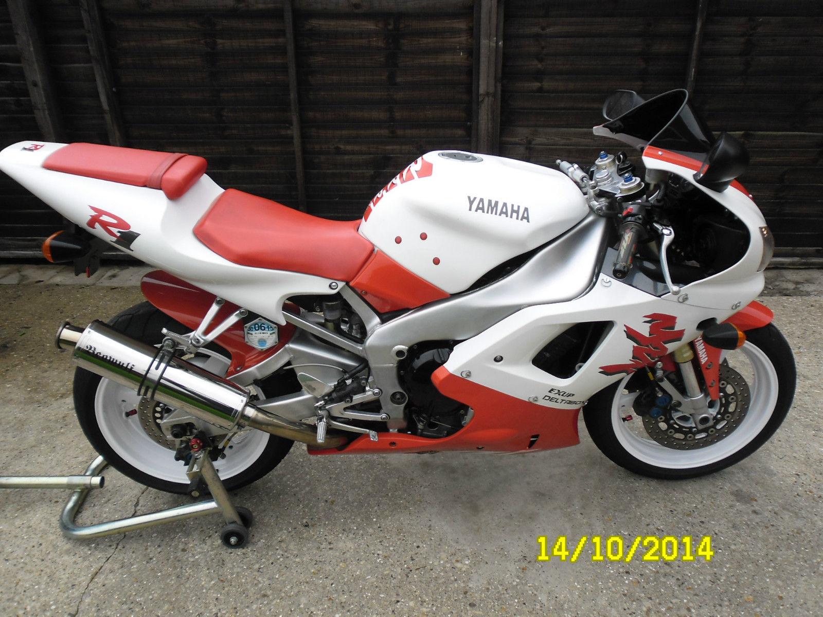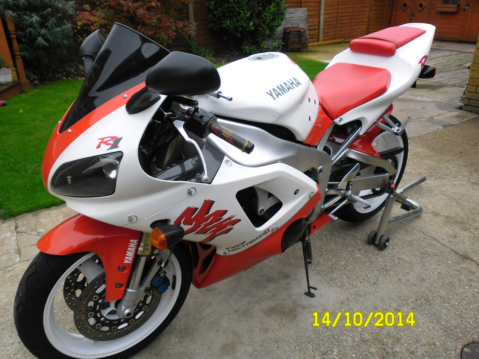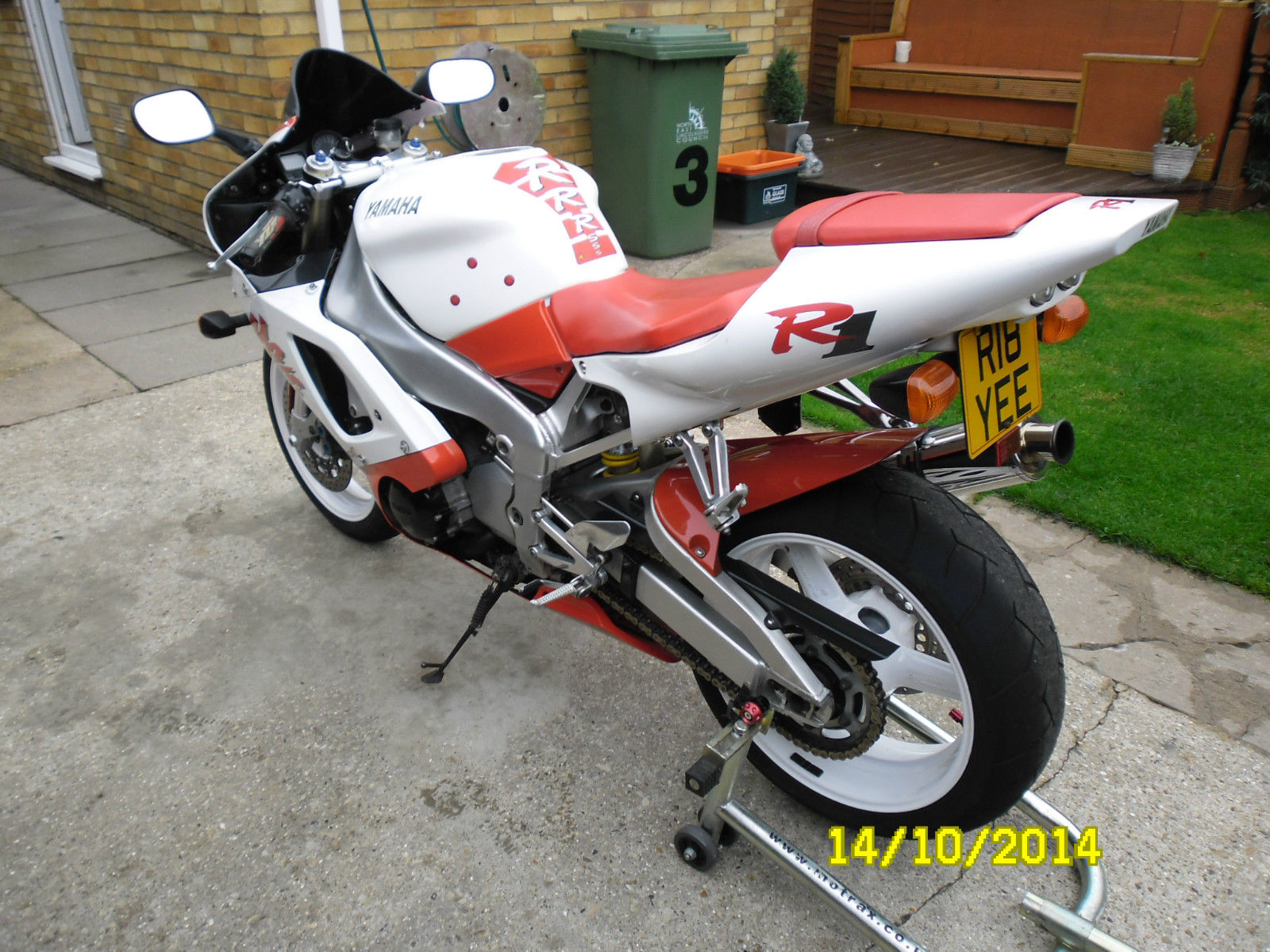 UP FOR SALE MY BELOVED YAMAHA R1 IN RED AND WHITEI HAVE OWNED THIS BIKE FOR THE PAST SIX AND A HALF AND HAVE ENJOYED EVERY MINUTE OF IT. ONLY SELLING DUE TO LACK OF USETHE BIKE RIDES PERFECT AND WILL KEEP UP WITH MOST MODERN BIKES OUT THERECHEAP INSURANCE(I'm 46 with full no claims and only costs me around £100 TPFT)DUE TO AN OVERHEATING ISSUE I HAVE FITTED A REPLACEMENT ENGINE WHICH HAD ONLY COVERED 16000 MILES THIS WAS DONE 2 YEARS AGO AND I HAVE ONLY DONE AROUND 500 MILES WITH IT AND HAS BEEN FAULTLESS. NEW CLUTCH PLATES AND DIAPHRAGM SPRING FITTEDNEW FRONT AND WHEEL BEARINGS FITTEDNEW HEADSTOCK BEARINGS FITTEDNEW PADS FRONT AND REAROIL AND FILTER CHANGED A FEW MONTHS AGO BOTH WHEELS POWDER COATED WHITE (SPARE REAR WHEEL INCLUDED BUT IN SILVER WITH TYRE)HARRIS STEERING DAMPER FITTEDGOODRIDGE HOSES FRONT AND REARBEOWULF END CAN AND LINK PIPE (STANDARD CAN INCLUDED)TINTED SCREENHARRIS GRIPSREAR UNDERTRAY WITH LED LIGHTSORIGINAL TOOL KITALL PAPERWORK AND DOCUMENTS PRESENT AND CORRECTTHE BIKE IS USED AND NOT IN SHOWROOM CONDITION WITH THE ODD SCRATCH AND CRACK IN THE FAIRINGS AS YOU WOULD EXPECT FROM A BIKE OF THIS AGETHE PAINT WORK IS NOT ORIGINAL METALLIC PAINT BUT IN A FLAT WHITE AND RED (NOT THE BEST PAINTWORK BUT STILL LOOKS GOOD AS THE PICTURES SHOW) YOU ARE WELCOME TO COME AND VIEW THE BIKE JUST CONTACT ME THROUGH E BAY TO ARRANGE A DAY AND TIME(I WORK AWAY SO BE PATIENT IN MY RESPONSE PLEASE)CASH ON COLLECTION THE BIKE IS ADVERTISED ELSEWHERE SO WILL BE REMOVED IF SOLD THANKS FOR VIEWING REGARDS. STUART