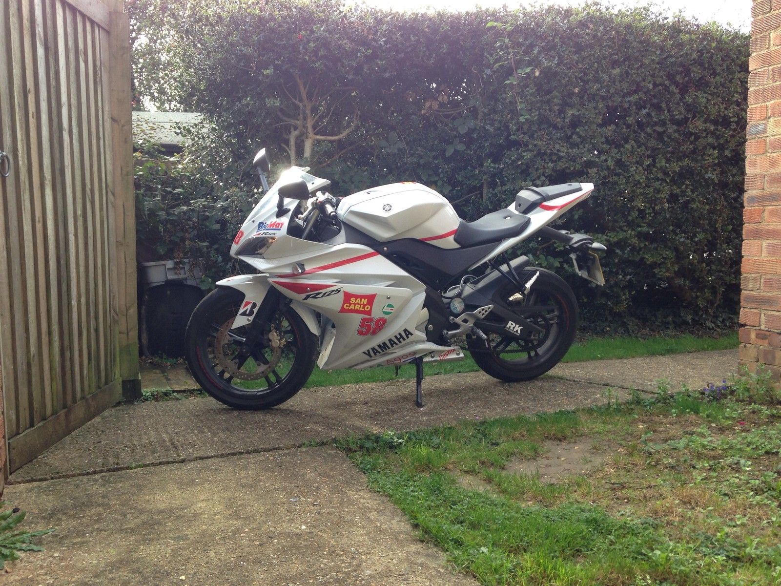 For sale is my much loved Yamaha YZF R125. nbsp;Which I have owned since new. only covered 9000 miles and am selling as the time has come for an upgrade. This is a superb learner bike. never de-restricted. which has been looked after by a 30 something year old man. :-DThere are some minor cosmetic marks due to a tight fit in my garage. where it has always been dry stored. Only ever used Yamaha Genuine oil and parts. She has a Simoncelli sticker kit which has been added to commemorate a MotoGP Legend and makes her one of a kind! All original documentation manual. service book. 2 keys and V5 present. Any further questions please dont hesitate to send me a message. Cash On Collection Only. Thanks For Looking!