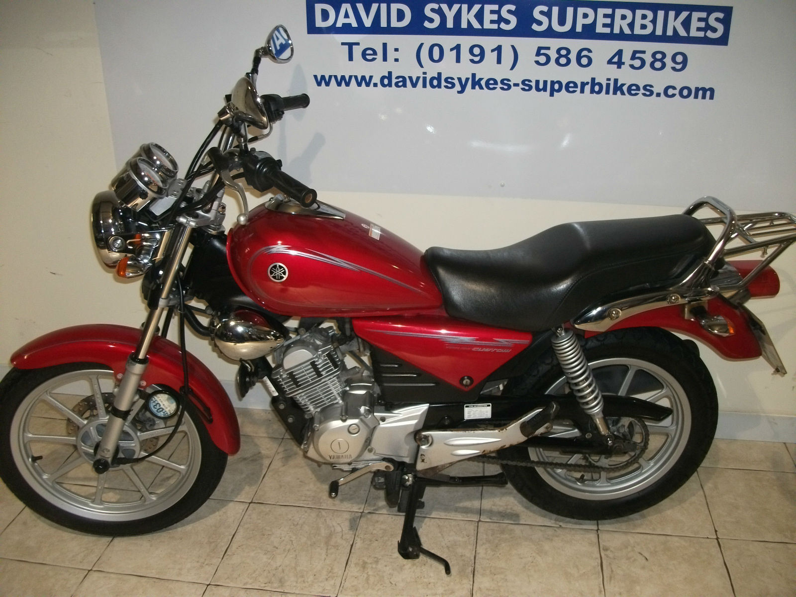 FANTASTIC AS NEW YAMAHA YBR 125- CUSTOM 13-REG WITH 12962 MILES FROM NEW. IN RED ONE OWNER MACHINE SOLD AND SERVICED BY OURSELVES FROM NEW. IDEAL LEARNER LEGAL COMMUTER MACHINE . AVE ££££££S TRAVELING TO WORK . CHEAP TO RUN AND INSURE. One of the cheapest ways to travel to work. or for a nice weekend rideout. This machine Comes With. 1- FULL PRE-DELIVERY INSPECTION2- 12 MTHS ROAD TAX 3- A CBT PACK CAN BE ADDED FOR ONLY £250. THIS INCLUDES CBT RIDER TRAINING. ELMET. LOVES. OCK TAX AND LOCAL DELIVERY. 4- BEST PART/EXCHANGE DEALS5- FREE LOCAL DELIVERY( NATIONAL CAN BE ARRANGED )Its Available From Only £25. Deposit And Up To 5 yrs To Pay. So Dont Delay Call Today. Part Exchange Very Welcome. FOR MORE DETAILS CALL DEREK TODAY ON 0191-5864589 OR E-MAIL ON sales@davidsykes-superbikes. com