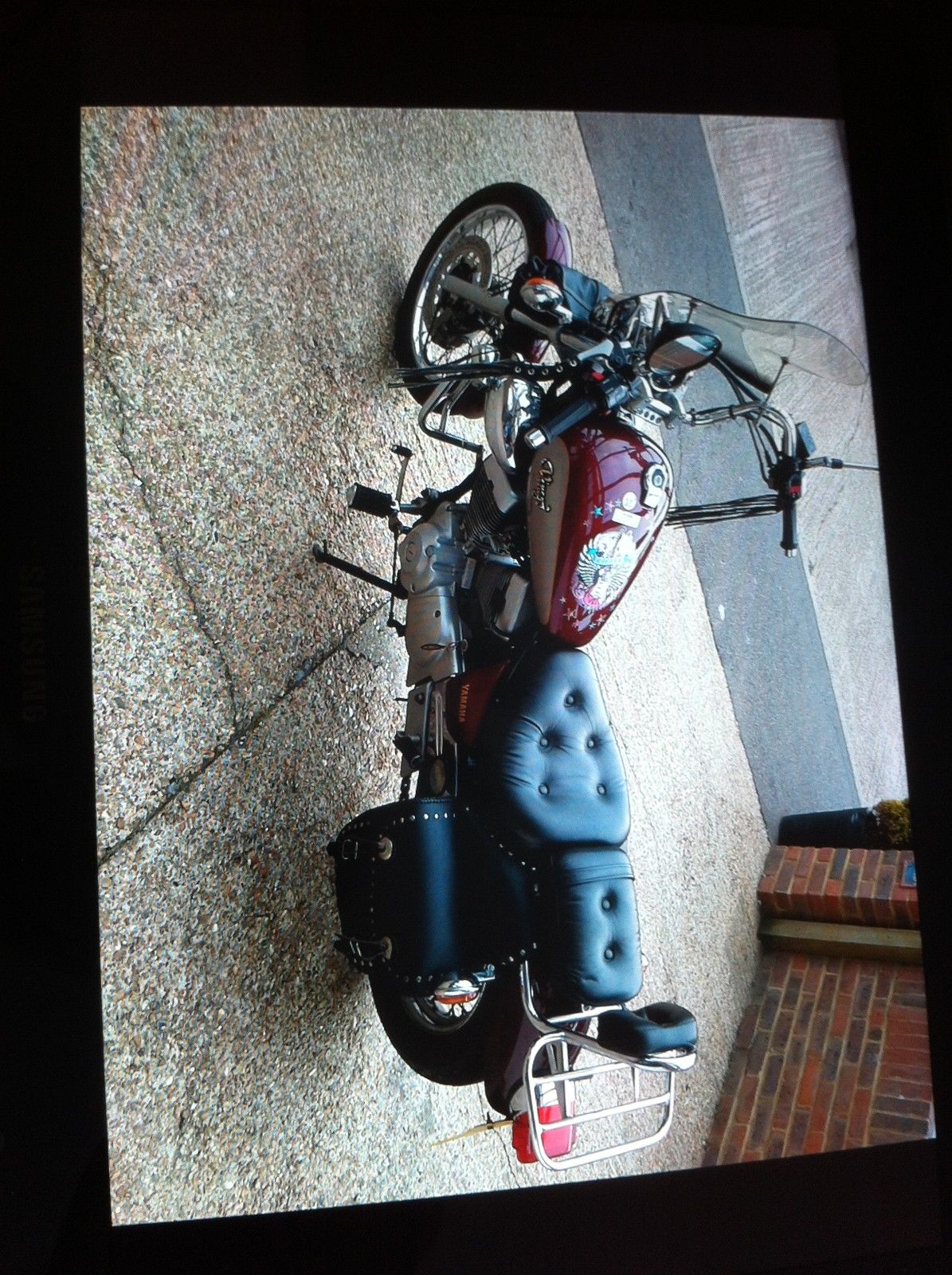 A FEW AGE RELATED MARKS. BUT A NICE BIKE WHICH IS A JOY TO RIDE. SISSY BARS . NGINE BARS. ND CRUISING LIGHTS FITTED. ANY QUESTIONS