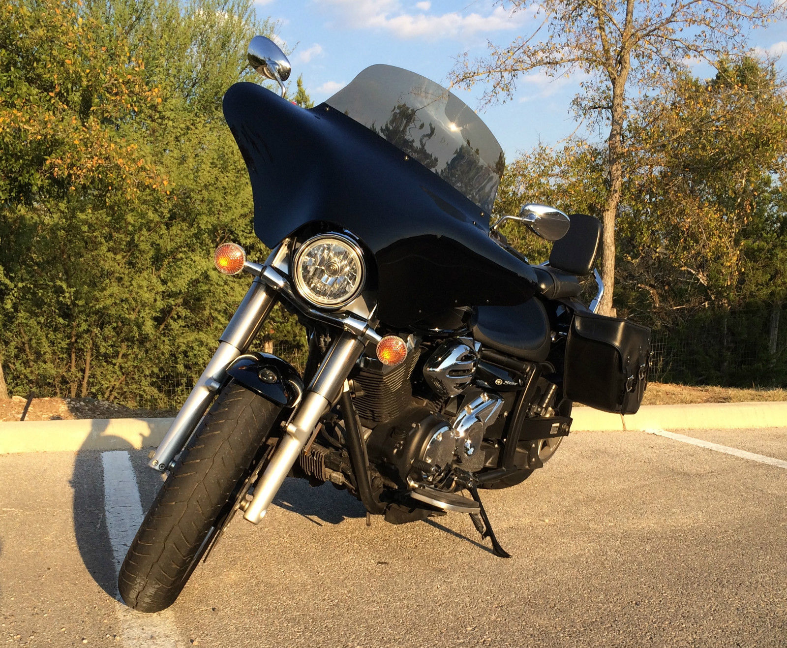 I am selling my 2009 Yamaha V-Star 950 Cruiser. This bike runs great and sounds great. It has a Cobra Fi2000 Power Programmer and a Cobra Power Flow Air Intake with K&N filter. I also comes with a new Memphis Shades Batwing Fairing with quick release mounts. It has Vance & Hines custom exhaust that sounds great. Also comes with saddlebags and a sissybar for a second rider. This motorcycle has never been wrecked or laid down. I don't really want to sell it but I am getting married and need to get rid of some of my toys to make room in my garage. Clean TX title and only 10. 00 miles. This motorcycle is being listed locally as well and I reserve the right to end the auction sooner if sold locally. Email me if you have any questions.