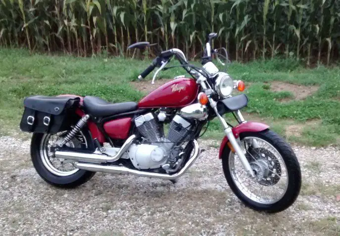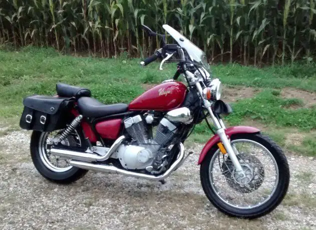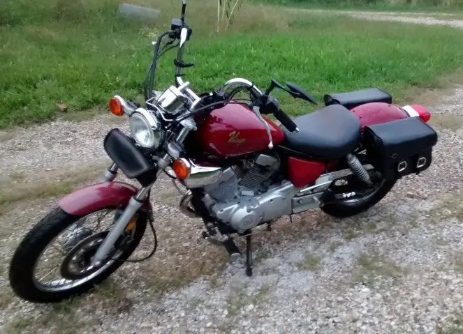 1995 Virago xv 250. Original paint. hard-mounted Viking saddle bags. fork bag. custom mirrors. fog lamps. and 20% taller gear ratio than stock (went from original 16/45 to 17/40) which makes it a much better highway cruiser at a lower RPM. Gets 78-82 MPG! (windshield shown is not included)The only mechanical things I've replaced are the stock chain (installed a 25. 00 mile X-Ring chain). and a new clutch cable. I've put over 9. 00 miles on it this season. Mileage is just under 15. 00 now. Oil has been changed every 2000 miles since I bought it in April. This bike is well maintained and never ridden hard. Priced for a quick sale! NO RESERVE! located in Vincennes. IN.
