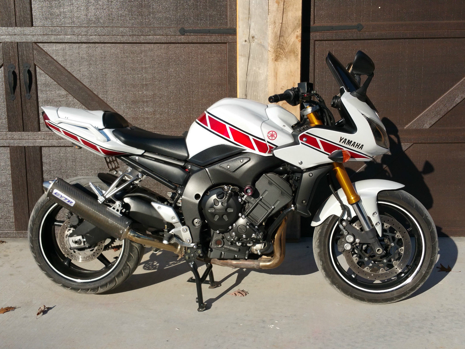 Up for sale is my 2007 Yamaha FZ1. I have carefully and intelligently modified it into the machine the lawyers and accountants won't let the engineers build. This motor lives up to it's potential and is an absolute blast to ride. ? The bike has 33. xx miles. The bike runs absolutely perfectly with zero issues. All maintenance done and oil changed every 3000 miles. Comes with factory service manual and everything I got from the dealer when I bought it. The bike has never been down. Zero damage anywhere. Clear title in hand. I will not spend time describing the FZ1. Those interested already know about the bike. I will describe the modifications. The bike was originally Raven (black). Two years ago I purchased and installed the Yamaha factory retro body kit so the bike is now white with red decals. ? The rest of the mods: Ivan's ECU flash. PCIII w/Ivan's map. Speedohealer. cat-out. 16/47 sprockets. OEM chain installed at 24. 00 miles Ivan's flies. Knock-off bar end mirrors. One Off mirror hole plates. Billet shorty levers. Yamaha GYTR Slip On 12V power port. wired for heated gear. CompWerkes LTD Fender Eliminator. Air box mod. BMC air filter. Engine Ice. Graves frame sliders. Windscreen blacked out. Fenda Extenda. There is as more invested in aftermarket parts then the bike is worth! The retro body kit front fender was originally red. I had it painted in the same white as the rest of the body kit. The wheels have white reflective rim tape.