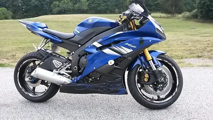 07 YAMAHA R6. I am the second owner of the bike. It was originally red but I changed it over to the blue ferrings as I