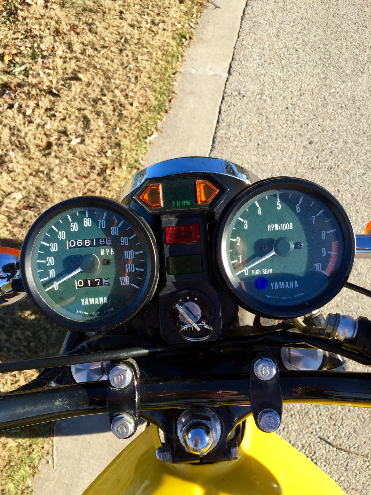 I purchased this bike as an excellent condition. very well maintained. nbsp;stock bike about a year ago and made some changes to enhance the look and performance by having the tank and side panels beautifully and professionally repainted Competition Yellow for that Kenny Robert road racing look. New tank and side panel graphics were replaced with the Canadian version graphics for that year model and all other parts of the bike such as engine. frame. etc. still have very nice stock factory paint. The factory airbox was removed and a K&N Y Boot filter was installed to increase air flow and compliment the DG Performance expansion chambers added to replace the stock exhausts. These changes added more horsepower and with the light weight and cornering maneuverability of this bike. it's an absolute thrill to ride. I also added a super nice street fighter seat made by HVC Performance Cycle to give a sleeker look. It starts on the first or second kick and runs great. all electronics work properly. license plate and inspection are current and I have a clear title in my name. It will occasionally leave a drip or two from the exhaust which is not unusual for these vintage bikes. There are no dings or dents in the tank and the stock paint on rest of the bike is super nice for a bike of this vintage.