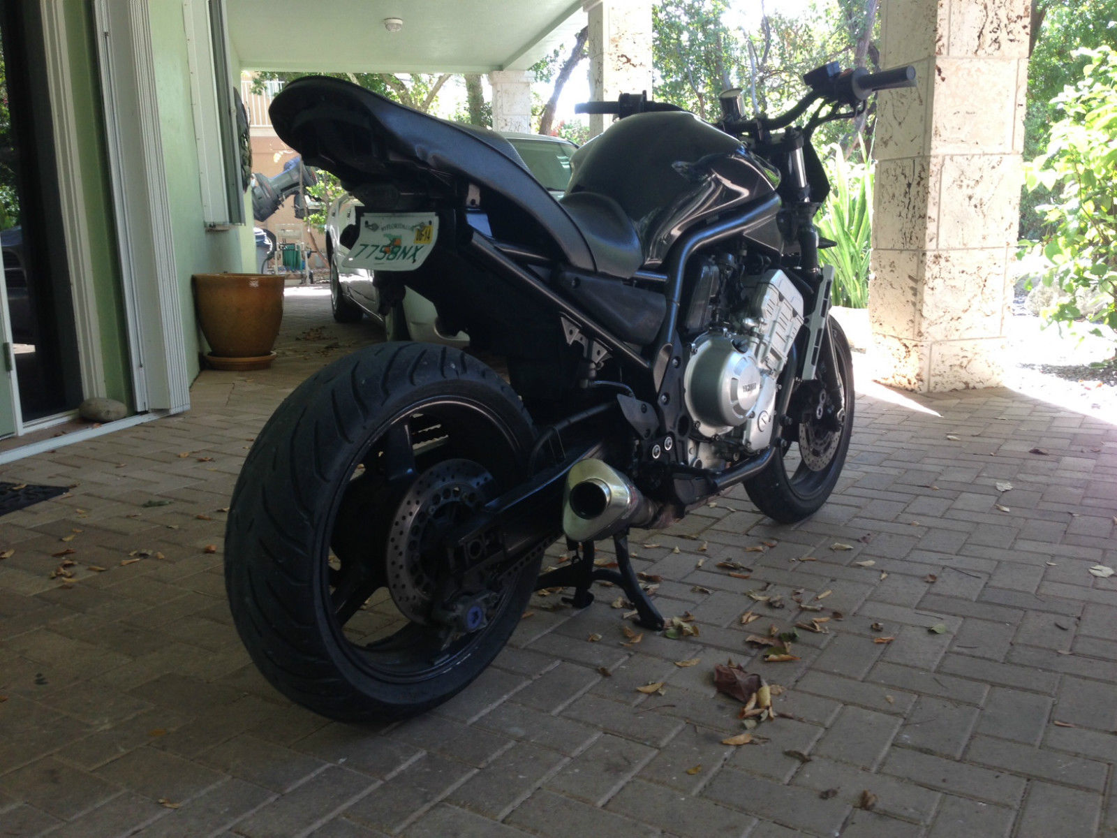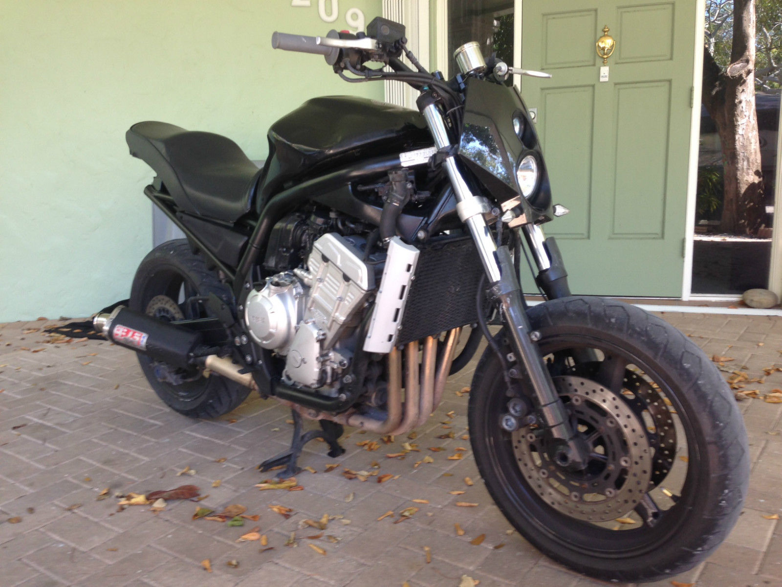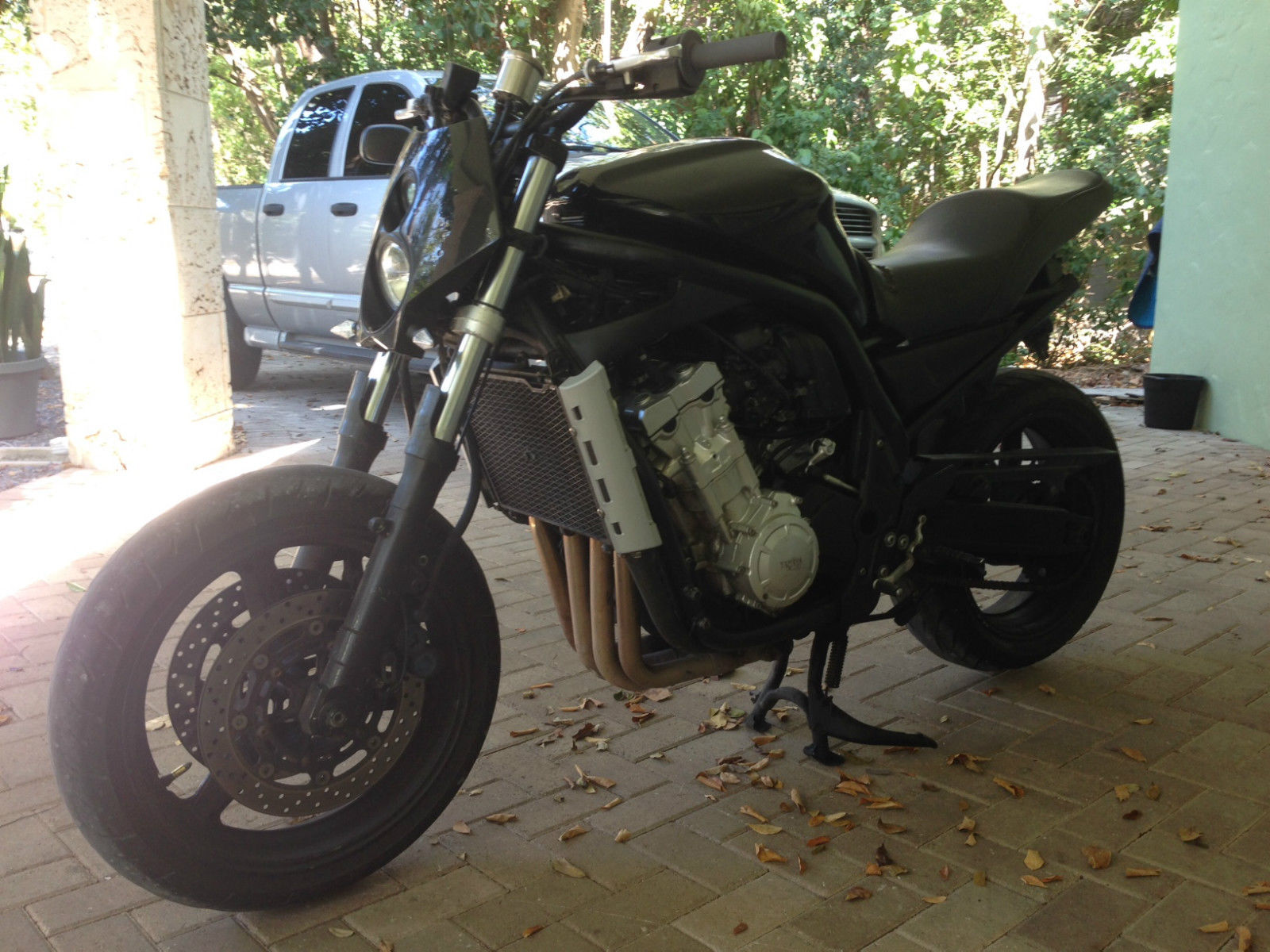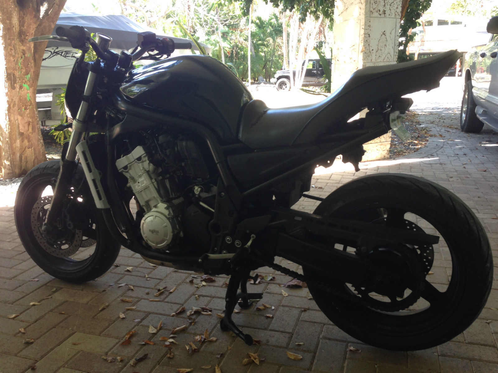 You are bidding on a 2002 Yamaha FZ1 Street Fighter. This bike has been altered and modified to be a tradition street fighter with minimal plastic. faring. etc. It has a new motors and trans with less that 6K miles on it. It runs very strong and absolutely no mechanical problems what so ever. If you are looking for a fun bike to ride at a great price you have found it. Fast. fun. and just in time for Christmas. Happy Bidding!