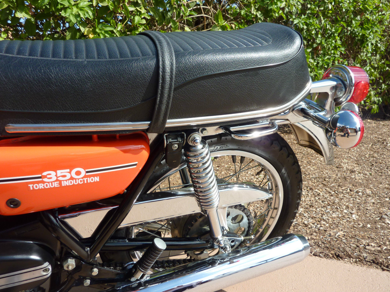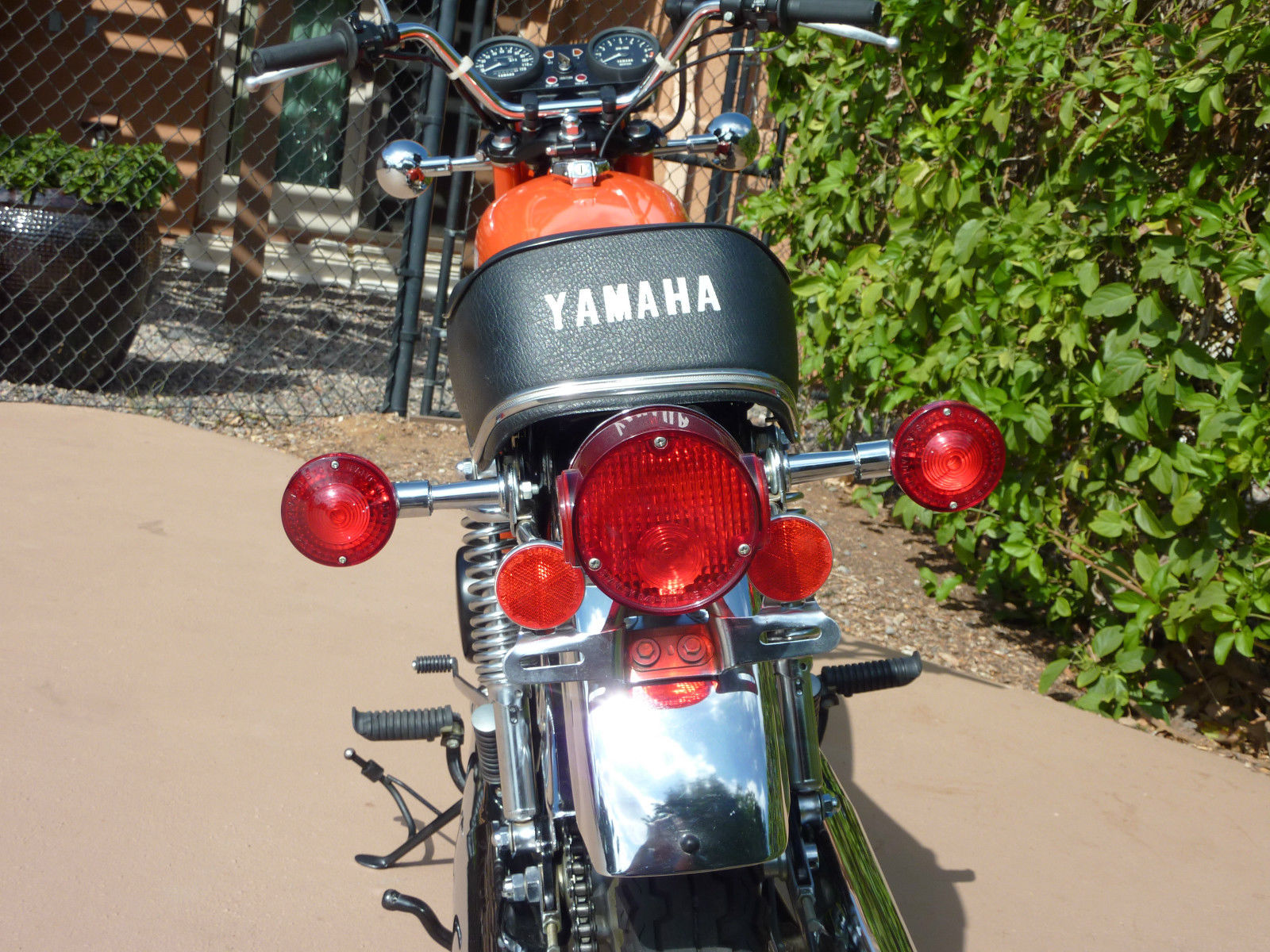 This is an unrestored. show quality one owner bike. It has less than 1700 miles on it. The reason that the mileage is so low is because the original owner had other bikes that he rode. It was recently acquired out of a small private collection in Oakland. CA. The bike was stored for the past ten years. The paint and graphics are excellent. It has a new battery and the carburetors have just been rebuilt. The seat is original and perfect. The bike usually starts on one kick and runs and shifts smoothly. It even has the original coating on the spokes. The sale includes the original tool kit and 3Yamaha Service Manuals. Winning bidder is required to deposit US $500 within 48 hours of auction close by PayPal. Full payment is required within 7 days of auction close by Cash in person. Certified check or personal check from a MAJOR U. S. or CANADIAN BANK that can be verified. or a U. S. Postal money order. Vehicle will not be shipped until the funds are cleared and verified. All shipping arrangements and charges are the "Buyer's" responsibility. Seller is not liable for damages after pickup. Vehicle is in Oceanside. CA (near San Diego). This vehicle is being sold as is. where is with no warranty. expressed or implied.