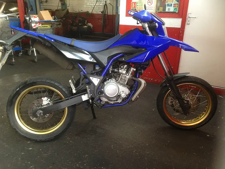 This is my sons yamaha wr 125 which i think he has only owned for 3 months he never really rode it tbh seemed to clean it more then he rode it . just recently been serviced new oil and filter air filter and spark plug . as you can see from the pictures the bike is in immaculate condition never been dropped or crashed Always kept indoors under cover rides absolutely spot on . Completely standard bike not been messed around with like a lot of these bikes have been . he bike is taxed and mot so can be ridden home 2x keys and log book and a wallet full of paperwork and receipts even with original owners manual . message me for info 07896002901