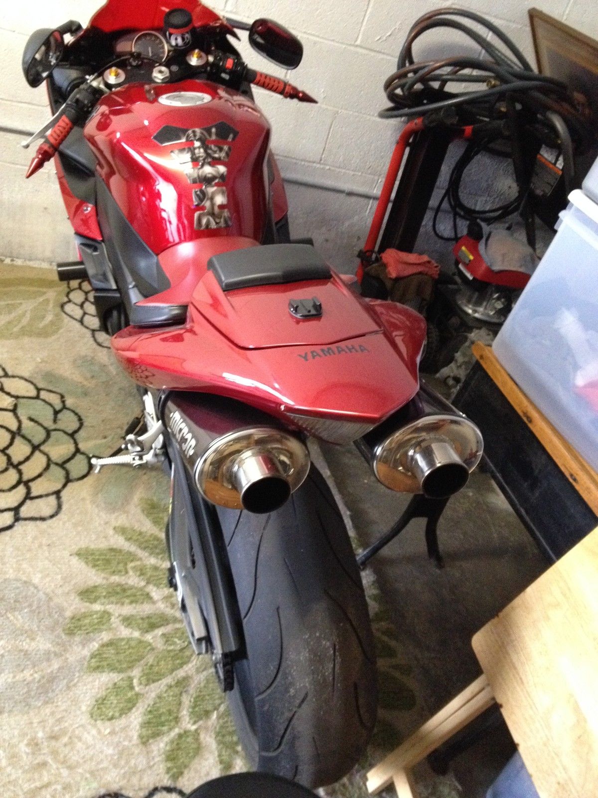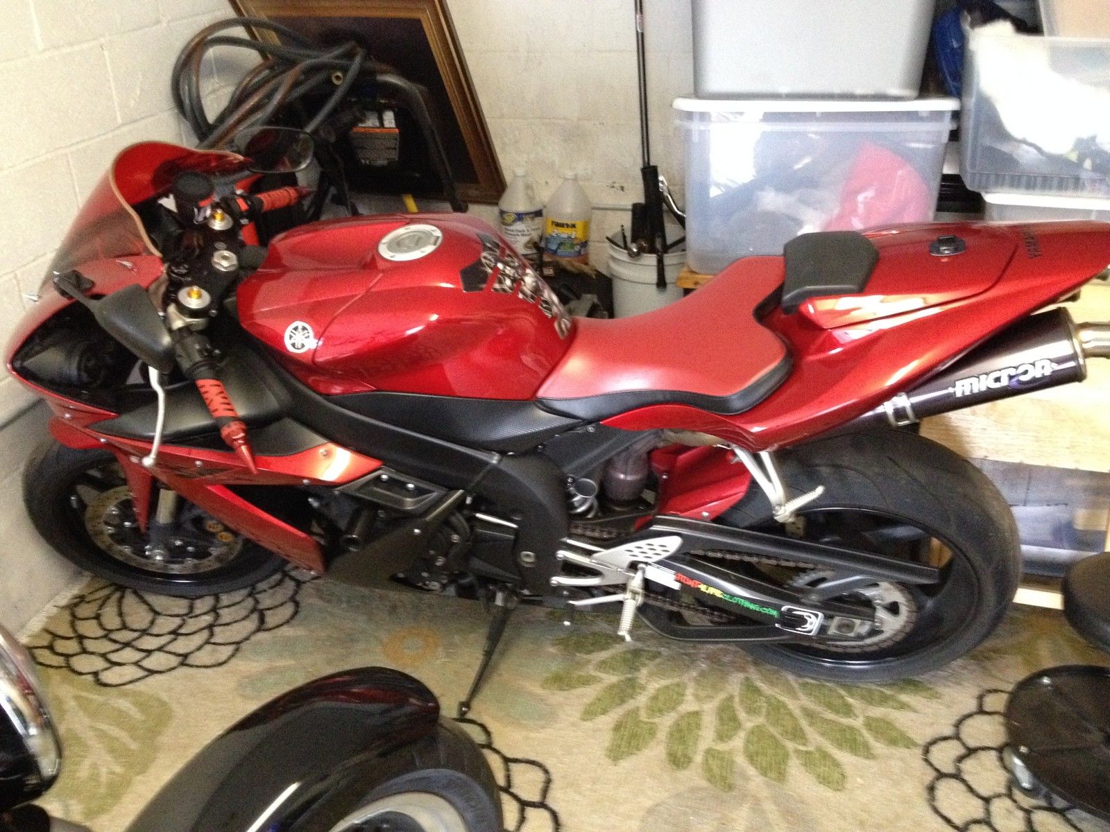 im listsing this for my son im sorry in advance about the photos and breif description. THIS IS A 2004 YAMAHA R1 IN NEAR MINT CONDITION . EVER DOWN AND ALWAYS GARAGE KEPT IT HAS 14525 MILES. REALLY CLEAN SHARP BIKE . HEIR ARE MORE GOODIES ON AS YOU CAN SEE ! GOOD LUCK THANKS FOR LOOKING !